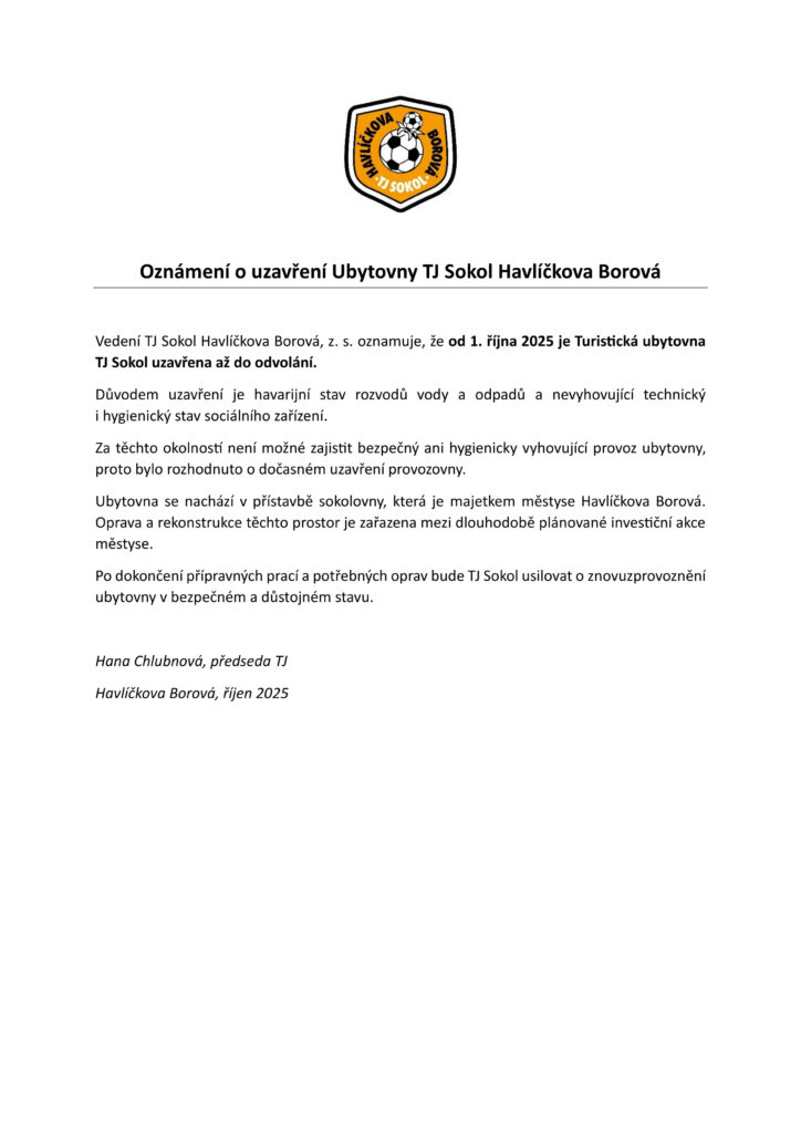 Předseda TJ: 739 626 612 (Hana Chlubnová)
